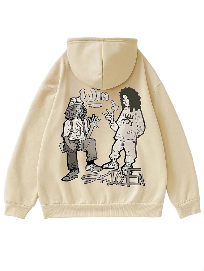 - Color & Pattern: Classic black hoodie with an eye-catching printed slogan “win skicen”, making it unique and stylish.